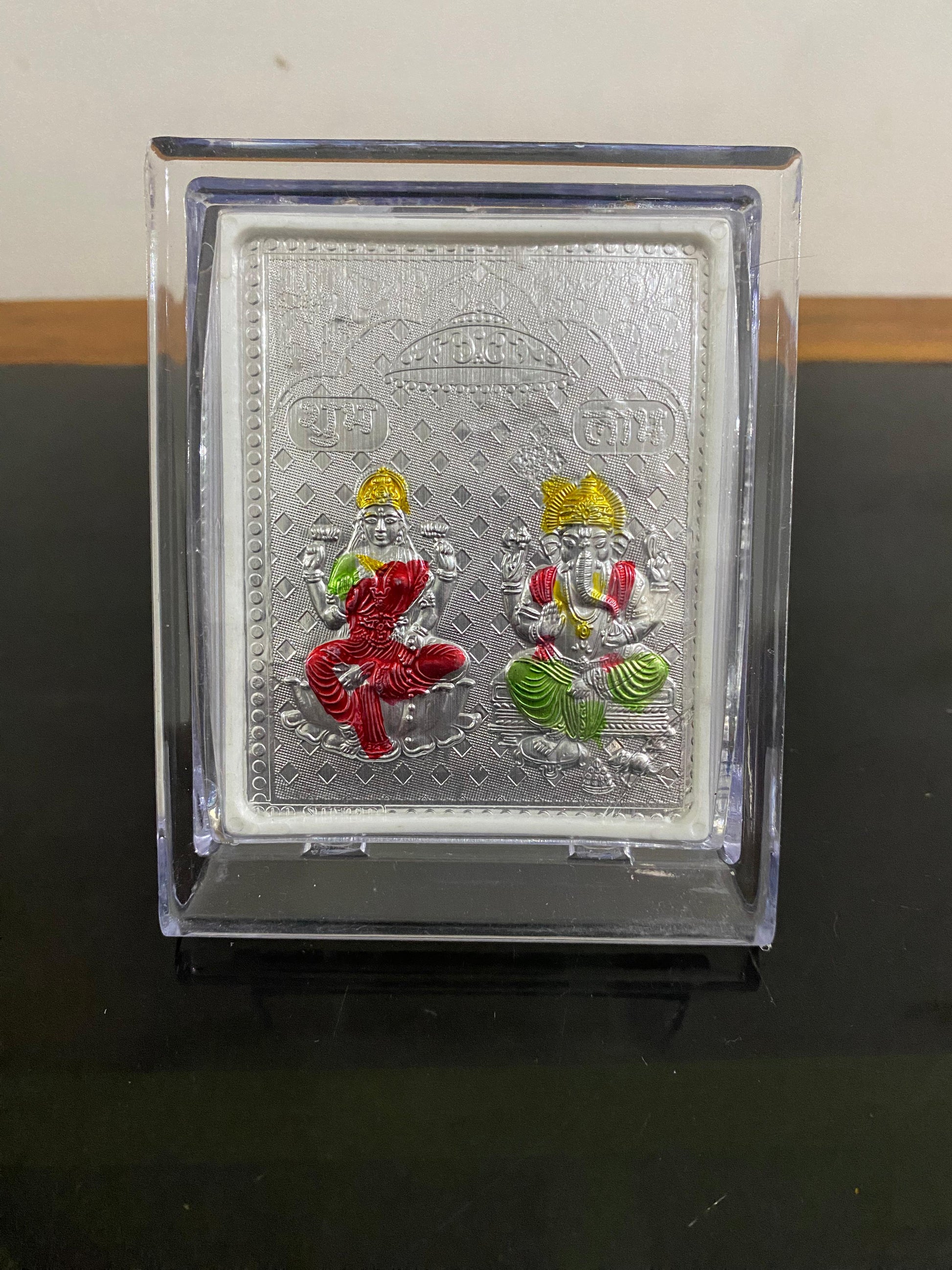 • Design: Beautifully embossed and colored image of Goddess Lakshmi and Lord Ganesha